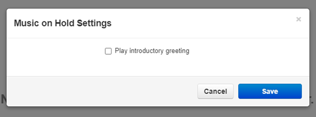 Then you will get to a page titled, Music On Hold Settings, then you press Play introductory greeting. From here you can type the recording using Text-To-Speech, upload one using the Upload button, or you can record a greeting.