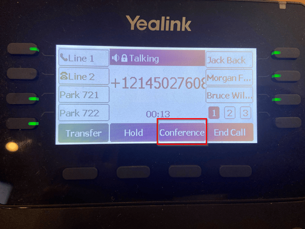 - Press the Conference soft key again when the second party answers. All parties are now joined in the conference