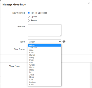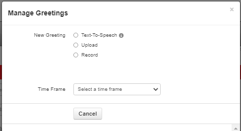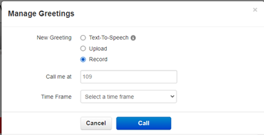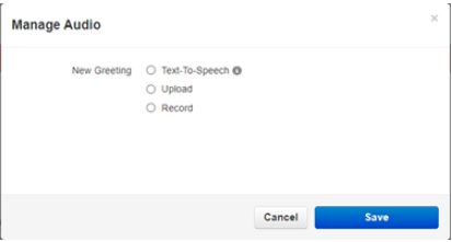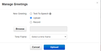 There are three ways to add a greeting, Text-to-Speech, Upload or Record your greeting.