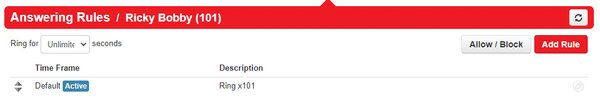 - Click on the Pencil next to the Default rule to edit the answering rule.