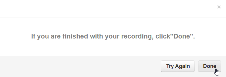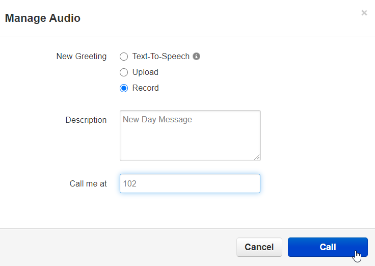 Click call to have the system call your device, answer the call, and then follow the prompts to record your message. Once you are done with your recording, click Done