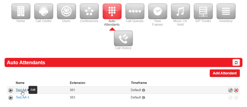 Select the Auto Attendants tab at the top and click on the auto attendant you are wanting to modify.