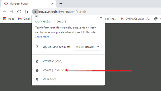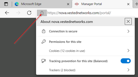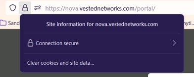 Notice the lock to the left of the web address of nova.vestednetworks.com.