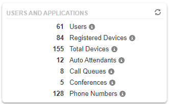 Shows you the total number of Domains, Users, Registered Devices, and Applications on your platform at a glance.
