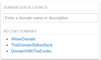 Simply type in the name or description of the domain you are looking for and the search function will try and find the appropriate domain based on the information given. Great for quickly getting to a domain you need to access quickly without going through the Domain Tab of your platform.