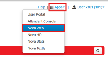- Once logged in, click the Apps drop-down menu in the top-right corner of the screen. Select "NOVA Web" from the list.