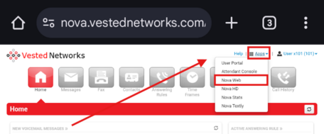 - Once logged in, tap the Apps drop-down menu in the top-right corner of the screen. Select “NOVA Web” from the list.