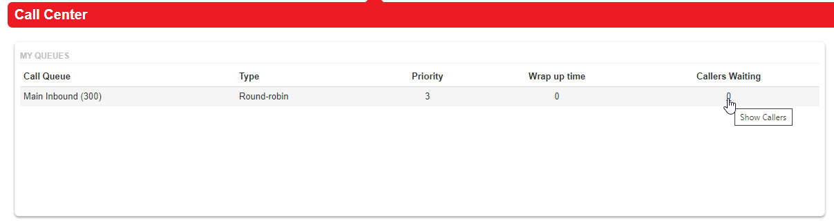 Once logged in, click on the call center icon to view a list of your current call queues.
