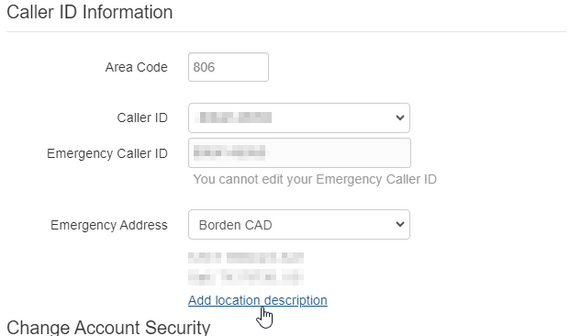 In the "Edit Caller ID Information" section, you will see your Emergency Address listed. Click "Add location description" and add the specific location information for your device