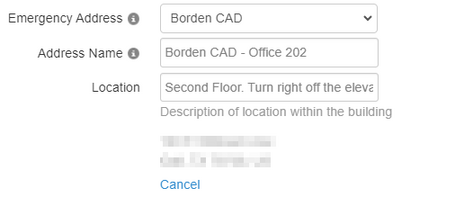 Address Name: It is best practice to copy the name of the existing address, and then add a "-" followed by the specific location. This allows us to better manage emergency addresses in the NOVA portal when we perform audits of the 911 system