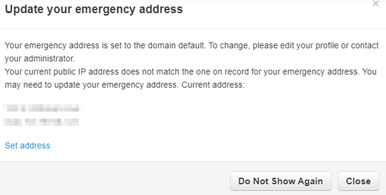 In today’s workplace, users often change locations for a number of reasons, and their devices follow with them. The DLR E911 feature recognizes this, and will prompt for new location information when it thinks a user has physically changed their location, to keep emergency responders up to date.