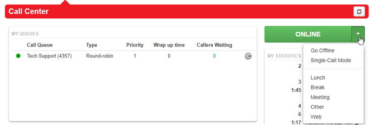 - Go-Offline: Sign out of the queue to no longer receive calls